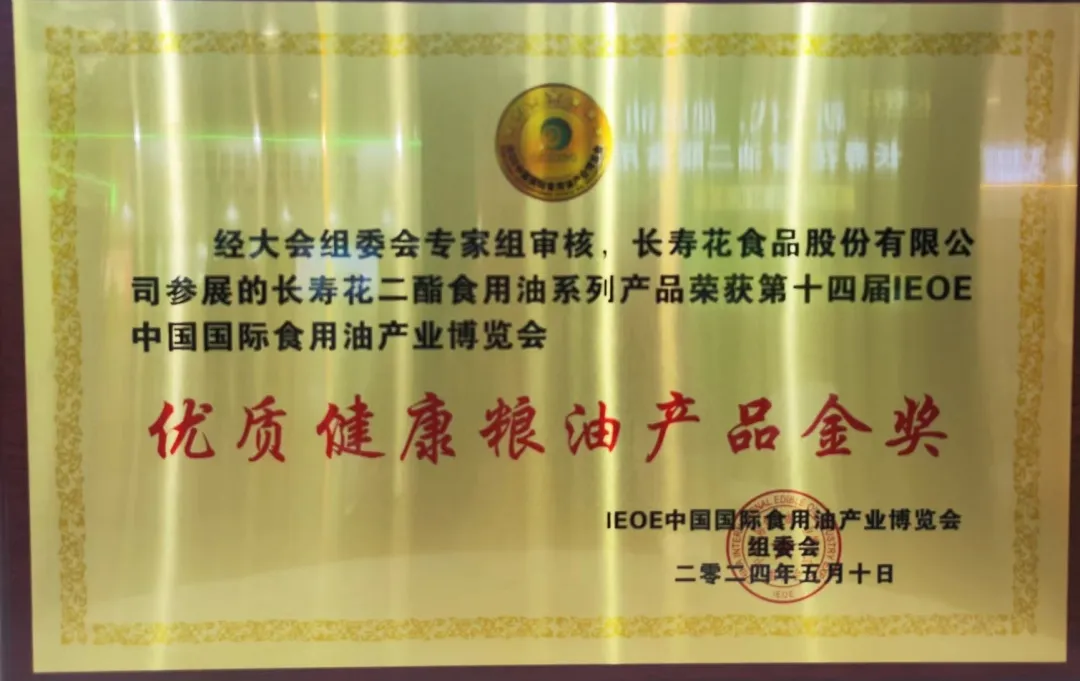 在萬眾矚目的第十四屆IEOE中國油博會(huì)、IGPE中國糧油展上,長壽花二酯食用油憑借卓越品質(zhì)與專業(yè)研發(fā)理念,榮耀加冕“優(yōu)質(zhì)健康糧油產(chǎn)品金獎(jiǎng)”!“優(yōu)質(zhì)健康糧油產(chǎn)品金獎(jiǎng)”不僅是對(duì)長壽花二酯食用油的肯定,也是對(duì)長壽花食品長期以來致力于推動(dòng)食用油行業(yè)健康發(fā)展努力的認(rèn)可。這份榮譽(yù),凝聚了長壽花全體同仁的智慧與汗水,是團(tuán)隊(duì)合作精神的結(jié)晶,更是對(duì)健康生活倡導(dǎo)的有力回應(yīng)。