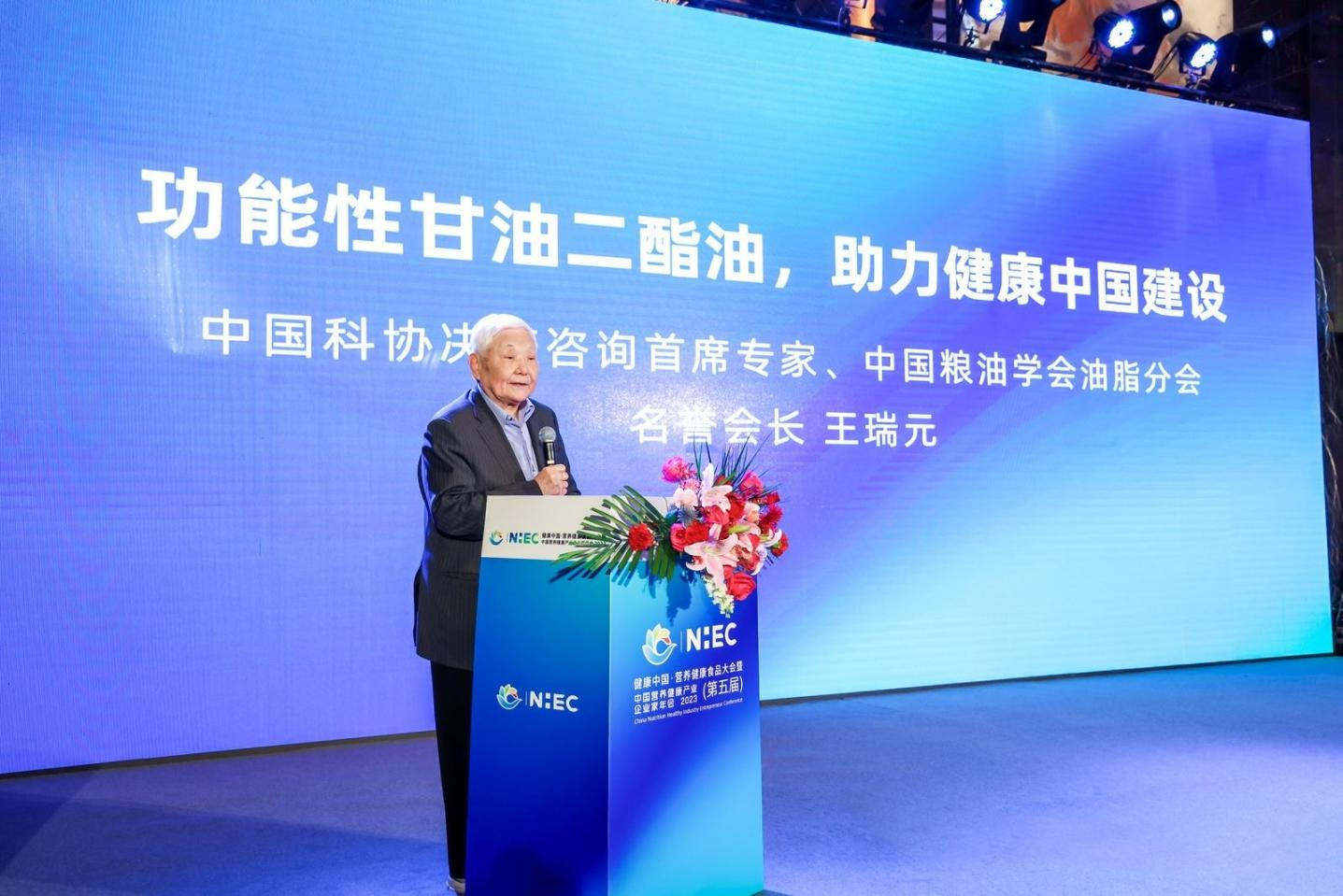 “讓國民選擇更健康的甘油二酯油,共同探索健康膳食新模式,已經是勢在必行。未來,甘油二酯油作為食用油油脂行業的創新型產品,將為健康中國建設產生非凡的作用。”中國保健協會副理事長兼秘書長、國家衛健委食品安全標準與監測評估司原副司長張志強在致辭中表示。
